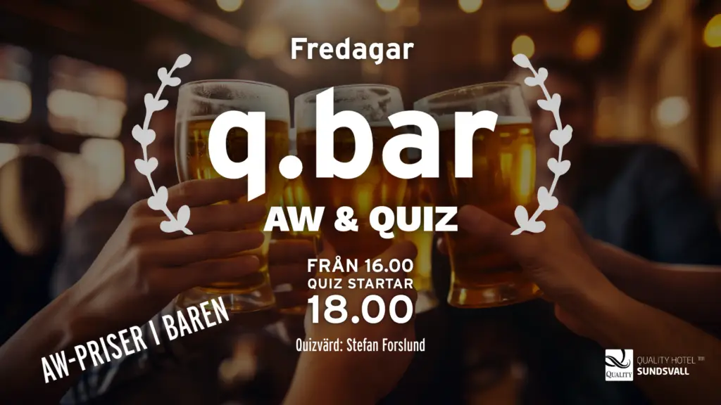 Klockan 18.00 startar vår quizmaster upp sitt quiz, tävla med eller mot dina kamrater om fina priser.